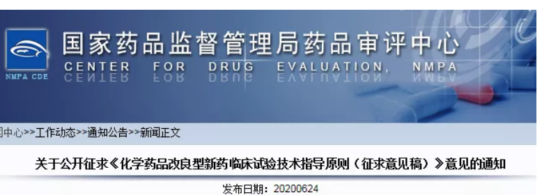 2020年6月24日,國(guó)家藥品監(jiān)督管理局藥品審評(píng)中心公布了《化學(xué)藥品改良型新藥臨床試驗(yàn)技術(shù)指導(dǎo)原則(征求意見(jiàn)稿)》,不到5000字的內(nèi)容,卻蘊(yùn)含巨大的信息量。