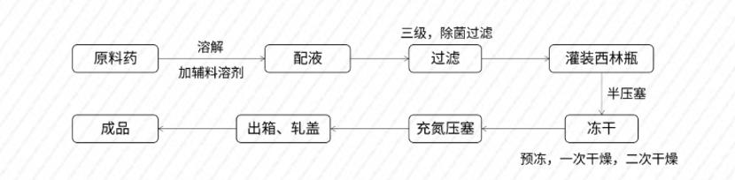 *:有些品種由于結(jié)晶型差,所以先采用大盤進行原料藥凍干,再進行無菌分裝。該種產(chǎn)品的流動性比較差,引濕性比較強,對生產(chǎn)要求較高。如:頭孢他啶。