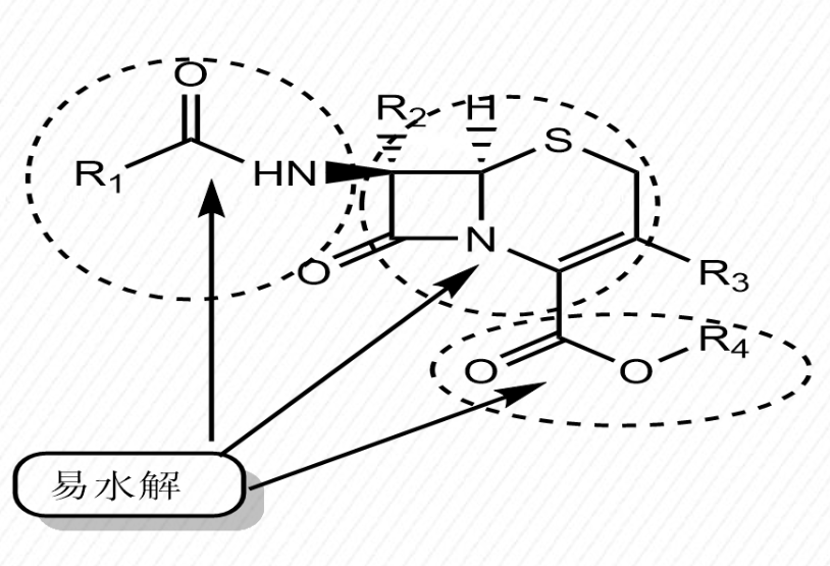 頭孢類化合物熱穩(wěn)定性差、酸堿穩(wěn)定性差、溶液穩(wěn)定性差,部分品種光穩(wěn)定性差。